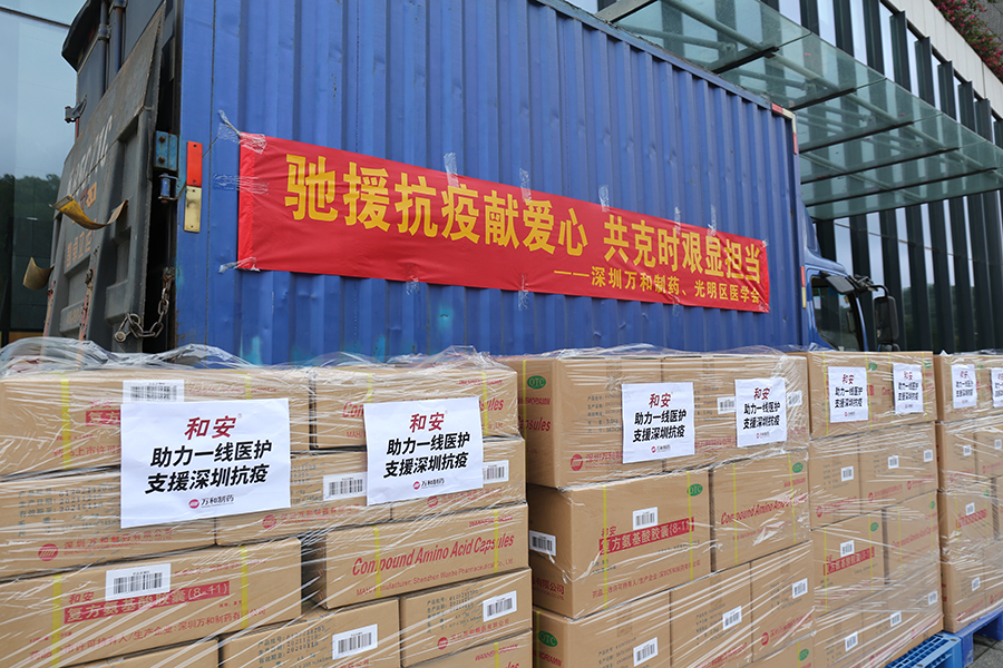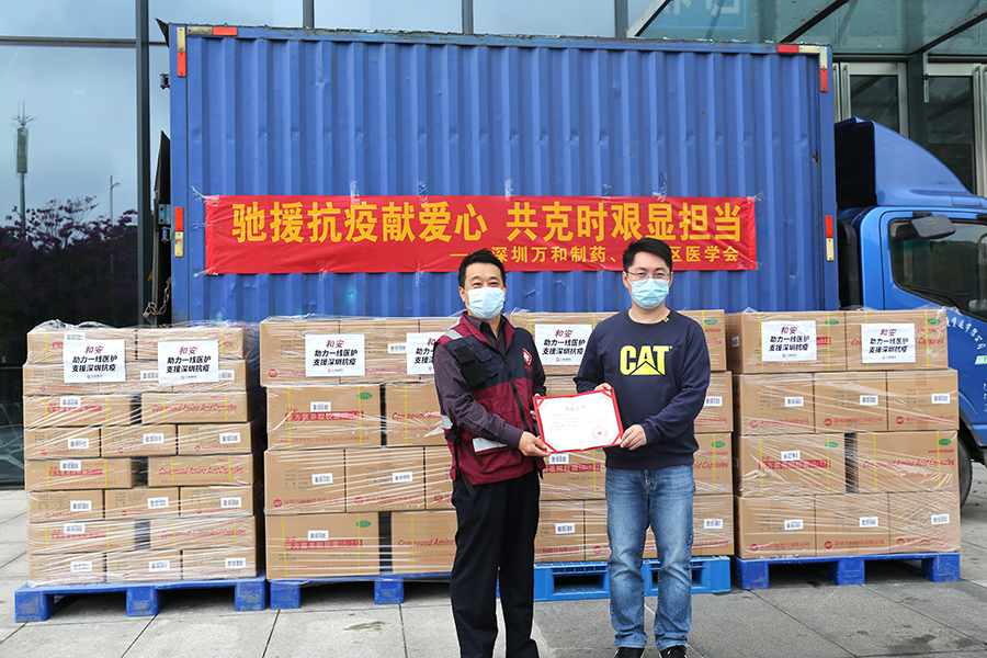 3月20日,深圳萬和制藥通過光明醫(yī)學(xué)會向工作在一線的抗疫醫(yī)護(hù)人員捐贈(zèng)了100件具有抗疲勞、改善免疫力功能的和安復(fù)方氨基酸膠囊,其總價(jià)值170余萬元。萬和制藥以實(shí)際行動(dòng)助力一線抗疫醫(yī)護(hù)人員,支持深圳抗疫工作。當(dāng)日上午在光明區(qū)政務(wù)公共服務(wù)平臺舉行了捐贈(zèng)儀式,出席儀式人員有深圳萬和制藥的代表以及光明醫(yī)學(xué)會秘書長胡建輝。胡建輝秘書長向萬和制藥代表頒發(fā)了捐贈(zèng)證書。捐贈(zèng)儀式結(jié)束后,萬和制藥代表隨胡建輝秘書長一起前往光明區(qū)防疫指揮部,一同把捐贈(zèng)物資送到了一線流調(diào)疫議人員的手中。